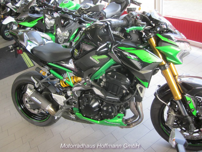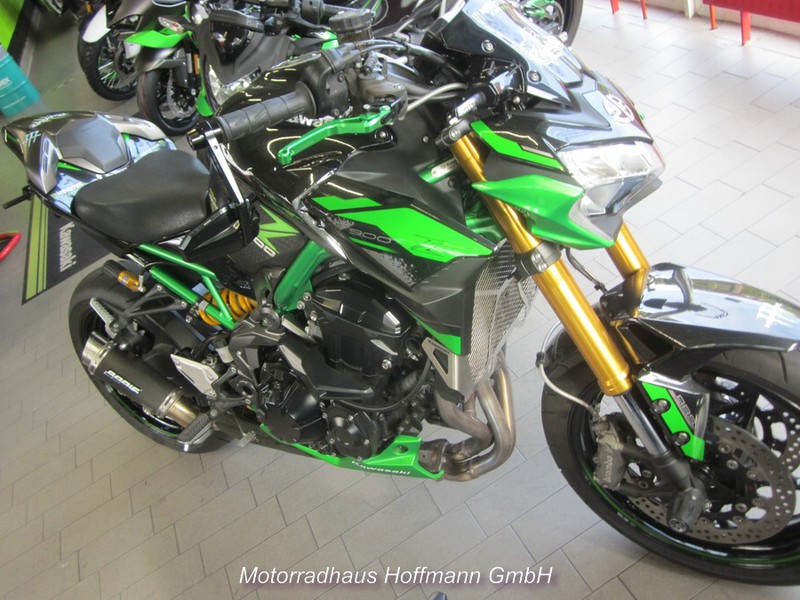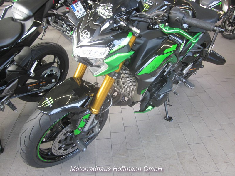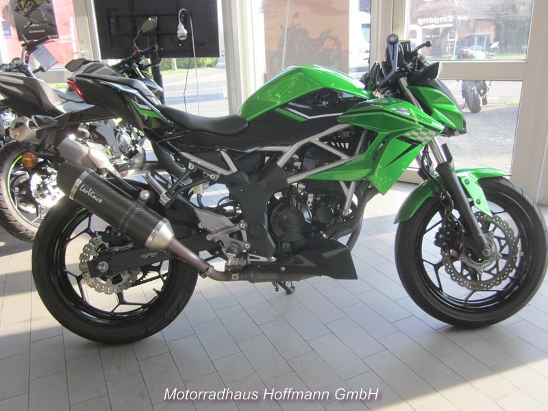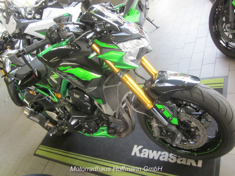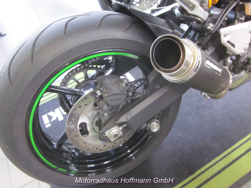 Kennzeichenhalter, Lauflichtblinker vo+hi, BODIS Auspuff, Lenkerspiegel, Sitzabdeckung, Sturzpads, Achspads, Hebelsatz